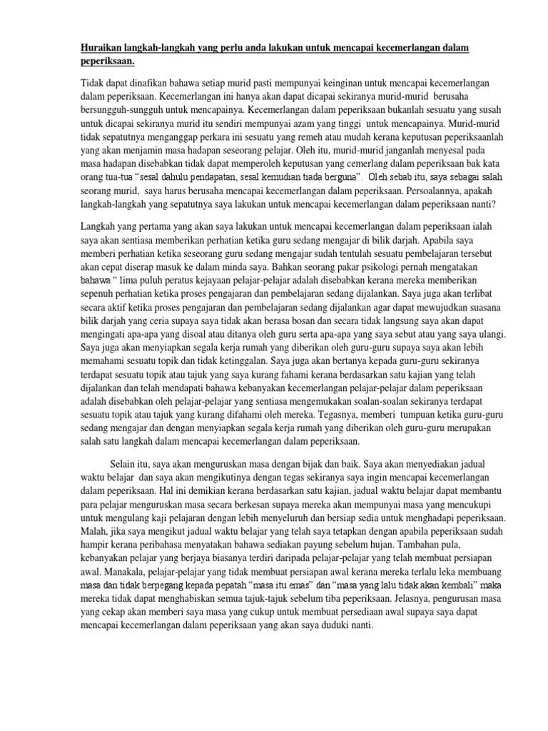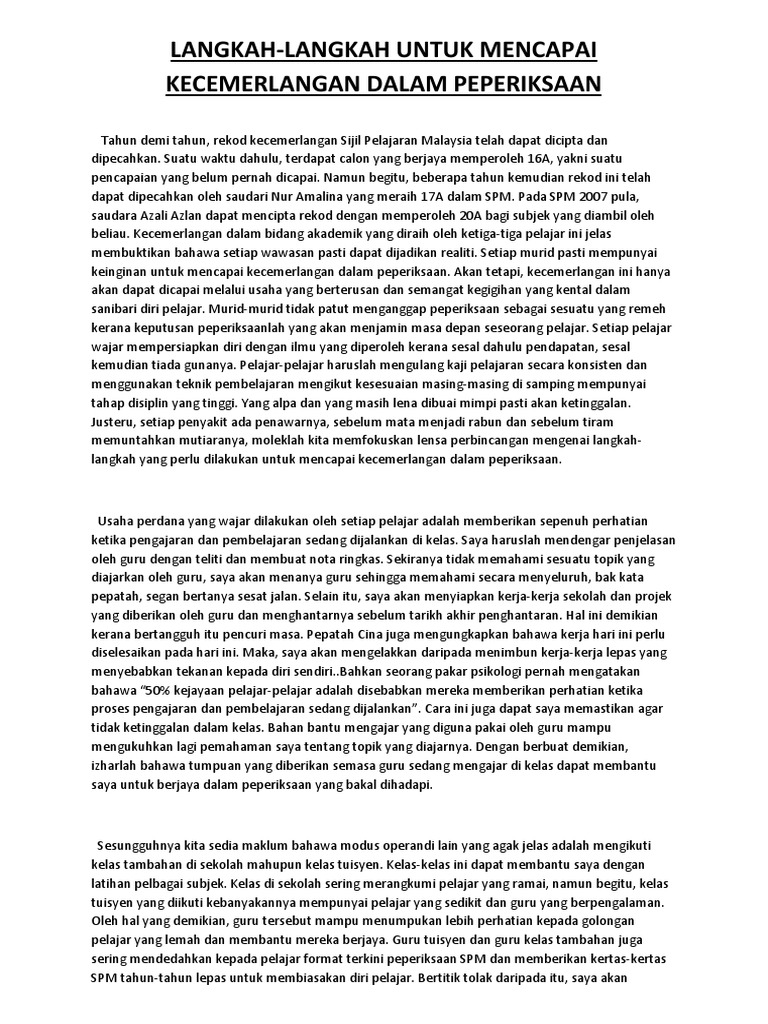 Langkah Langkah Untuk Mencapai Kecemerlangan Dalam Peperiksaan Contoh Pdf